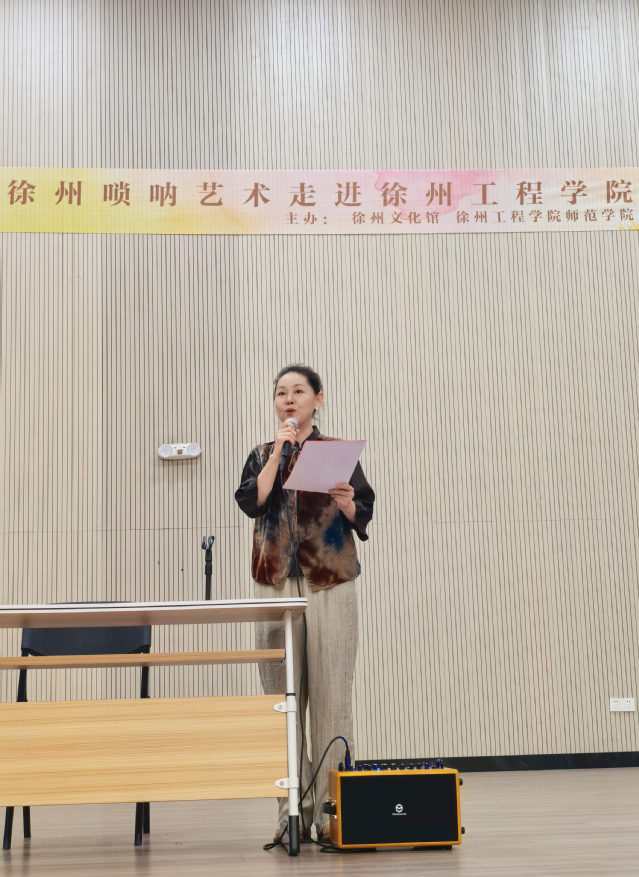 活动由校师范学院郭芳教授主持,徐州文化馆周艳副馆长、徐州市非遗保护中心周光雷主任、校非遗研究中心彭雪勤主任参加活动。师生齐聚一堂,近距离感受徐州传统音乐的魅力。