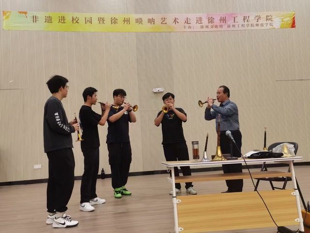 近日,一场别开生面的“唢呐进校园”活动在徐州工程学院音乐厅成功举办,吸引了众多师生前来观赏与学习。本次活动由徐州文化馆、徐州工程学院师范学院联合主办,旨在推广和传承徐州鼓吹乐——唢呐艺术。