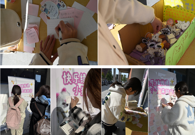 活动方式简单而充满创意,参与者只需在便利贴上写下愿望、开心事或对小狗的心里话,就能换取一只独一无二的纸小狗。这一过程不仅是领养一只纸小狗,更是在抒发内心的情感,倾诉压力与烦恼。许多学生表示,在写下文字的瞬间,心情便轻松了不少,仿佛小狗真的能带走不愉快,为心灵注入轻松且积极的力量。