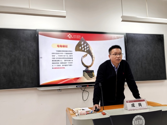 20241226日,新华日报社徐州分社社长、主任记者成岗应邀在敬中楼210教室作题为“‘号角催征’——新华日报86年报史中的中国新闻史”的讲座。此次讲座由学术副院长李冬香主持,24级小学教育专业学生参加。